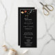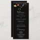 This colorful garden wildflower wedding program is perfect for a rustic wedding. The design features seamless hand-painted burgundy, red, navy, blue, yellow, and blush wildflowers with botanical leaves in a black background.