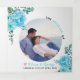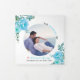 Flores aqua azul-aqua, folhas e foto do programa de casamento Tri-Fold. Uma design adorável que mostra uma foto, flores azuis de cacto e folhas suculentas no canto superior esquerdo e inferior direito, o texto "O casamento de" em preto e azul, seus nomes e data do casamento e um coração rosa no cobrir. Há outra foto no painel de trás, enquanto os outros painéis incluem os detalhes de sua cerimônia e festa de casamento.