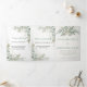 An elegant tri-fold wedding program designed for garden and outdoor weddings. Featuring soft watercolor greenery, refined typography, and a clean, center-aligned layout. Every line is fully editable for effortless customization on Zazzle. Ideal for botanical, vineyard, and classic romantic celebrations.