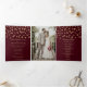 Programa Trifold de Casamento Fotográfico Confetti Dourado Burgundy com fotos à frente e atrás