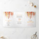 Arte em cascata de castanho no outono dobrou o programa 6pp. Estes programas de cerimônia de casamento fazem parte da coleção de eventos de arte de coloração aquosa em cascata correspondente. Bonito programa de casamento em laranja de coral, vermelho enferrujado, marrom e amarelo de mostarda em fundo branco. Contém espaço modelado para sua cerimônia de casamento, festa de casamento, sua história de amor, dedicações, e obrigados especiais e gerais para seus convidados. Ideal para uma cerimônia de casamento outono. Pintura com aquarela original e design pela artista e designer Sarah Trett para www.mylittleedenweddings.com apenas no Zazzle.