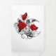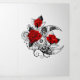 Contorno, lua da crista mecânica com engrenagens, decorada com rosas vermelhas com caules e folhas pretas em fundo branco. Steampunk