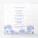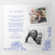 Desenho gráfico botânico do crisântemo azul e branco em um programa personalizado de casamento quadrado. Personalize com o nome de sua própria noiva e noiva e a data do casamento, cerimônia de casamento, história de amor, festa de casamento e obrigado, além de três de suas próprias fotos, um centro de página de cheio e duas na sua página de história de casamento. Perfeito para um casamento azul ou cair roxo. Design apresenta um impressão de desenho gráfico de flores crisântemas por Sarah Trett para www.mylittleedenweddings.com somente disponível no zazzle.