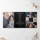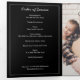 Programa de funeral de celebração de vida tripartido com fotos e ordem de serviço oferece uma apresentação digna e moderna-clássica que mantém o foco no seu ente querido, ao mesmo tempo em que organiza todos os detalhes claramente. A frente apresenta uma colagem de quatro fotos com o nome do seu ente querido e anos de vida, criando uma história visual coesa sem bagunça. Por dentro, o design organiza o conteúdo em painéis pretos equilibrados de alto contraste, bordas brancas finas e uma combinação refinada de texto contemporâneo em itálico e texto serifado nítido para uma leitura excelente. Uma seção dedicada à ordem de serviço mantém a cerimônia fácil de seguir; um painel de agradecimentos fornece espaço para agradecer os apoiadores e anotar detalhes da recepção; e uma área de palavras de conforto é reservada para um poema, oração ou mensagem significativa. Margens consistentes, tipo alinhado e hierarquia clara produzem uma aparência editorial que imprime de forma limpa, adequada a estilos de caligrafia modernos minimalistas, transicionais e contemporâneos. Com amplo espaço para redação personalizada e seis fotos, este programa memorial tripartido é ideal para funerais, serviços memoriais e celebrações de vida, oferecendo um souvenir polido que honra o legado e guia os convidados graciosamente pela cerimônia.