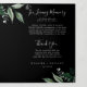 Este cartaz preto de esmeralda preto de mesa tripla é perfeito para um casamento de boho. A elegante, porém rústica, design apresenta folhas de cor verde-d-água escura e umeucalipto com uma moderna sensação de floresta boêmica. Personalize cada mesa tripartida com o número da tabela, a ordem dos eventos, na memória amorosa, um obrigado que você envia, os nomes do casal e a data do casamento. Torna o alternativo perfeito em números de tabela padrão.