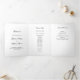 Esses modernos programas de casamento triplos e minimalistas mostram suas próprias fotos cobrindo completamente os cobrir dianteiros e traseiros. Uma camada branca contém todos os textos da sua cerimônia, bem como as suas iniciais.