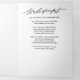 A celebração moderna de preto e branco do triplo programa de vida, proporcionando uma forma refinada e sincera de honrar a memória de um ente querido com uma apresentação sofisticada e eterno. Este programa de funeral "tudo em um" apresenta uma foto ousada no painel de cheio no cobrir, ao lado da escrita elegante e da tipografia serif, criando um tributo limpo mas emocional. O design inclui espaço para nome e data de vida, com painéis interiores dedicados a uma ordem estruturada de serviço, seção obituária e um poema ou palavras de conforto significativas. O painel final é reservado para agradecimentos e detalhes de recepção, permitindo que as famílias expressem gratidão com graça. Com sua paleta monocromática, títulos elegantes de script e ampla margem para conteúdo personalizado, este layout dobrado é ideal para famílias que buscam um design de programas funerários polido e respeitoso que equilibre beleza com funcionalidade.