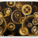 Sem costura, metal, latão, engrenagens douradas sobre fundo escuro enferrujado. Estilo Steampunk.