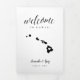 Planejar um casamento de destino, ou esperar muitos convidados fora da cidade? Compartilhe uma mensagem de boas-vindas para seus convidados de casamento no Havaí, bem como um itinerário ou agenda dos eventos do fim de semana. Frente apresenta um mapa silhueta do estado do Havaí com um dentro de coração. (Você pode personalizar a cor do estado e a posição do coração dentro da ferramenta design!) Personalize o dentro com uma mensagem pessoal de boas-vindas e um cronograma detalhado de eventos ou o itinerário do fim de semana do casamento. Perfeito por incluir nas bolsas de boas-vindas do hotel ou entregar aos quartos dos seus convidados.