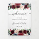 Planejar um casamento de destino, ou esperar muitos convidados fora da cidade? Compartilhe uma mensagem de boas-vindas para seus convidados de casamento, bem como um itinerário ou calendário dos eventos do fim de semana, com este belo design floral. Personalize o dentro com uma mensagem pessoal de boas-vindas e um calendário detalhado de eventos ou o itinerário do fim de semana do casamento. Perfeito por incluir em bolsas de boas-vindas de hotel ou entregar para os quartos de seus convidados, este cartão triplo chic foi projetado para combinar com nossa coleção de casamentos Radiant Bloom, com flores de cor d'água vibrantes de joias vibrantes, em azul de burgundy e marinho.