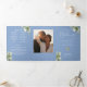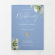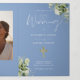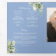 Um programa de casamento de missa completa católica elegante com folhagens florais em um fundo azul elegante. Projetado por Thisisnotme©
