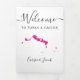 Bem-vindos convidados ao seu casamento com esta carta tripla. Há muito espaço para incluir seu itinerário, sugestões de restaurantes, coisas para fazer e informações de contato. Há espaço para uma foto na parte de trás da carta. Todo o texto pode ser personalizado, incluindo o título. Você pode editar as cores de qualquer parte desta design, assim como mover o coração para o local do seu casamento. Para alterar as cores, clique em personalizar e, em seguida, "editar usando a ferramenta design." Selecione o elemento que deseja editar e, em seguida, use as ferramentas para fazer as alterações.