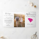 Bem-vindos convidados ao seu casamento com esta carta tripla. Há muito espaço para incluir seu itinerário, sugestões de restaurantes, coisas para fazer e informações de contato. Há espaço para uma foto na parte de trás da carta. Todo o texto pode ser personalizado, incluindo o título. Você pode editar as cores de qualquer parte desta design, assim como mover o coração para o local do seu casamento. Para alterar as cores, clique em personalizar e, em seguida, "editar usando a ferramenta design." Selecione o elemento que deseja editar e, em seguida, use as ferramentas para fazer as alterações.