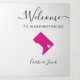 Bem-vindos convidados ao seu casamento com esta carta tripla. Há muito espaço para incluir seu itinerário, sugestões de restaurantes, coisas para fazer e informações de contato. Há espaço para uma foto na parte de trás da carta. Todo o texto pode ser personalizado, incluindo o título. Você pode editar as cores de qualquer parte desta design, assim como mover o coração para o local do seu casamento. Para alterar as cores, clique em personalizar e, em seguida, "editar usando a ferramenta design." Selecione o elemento que deseja editar e, em seguida, use as ferramentas para fazer as alterações.