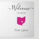 Bem-vindos convidados ao seu casamento com esta carta tripla. Há muito espaço para incluir seu itinerário, sugestões de restaurantes, coisas para fazer e informações de contato. Há espaço para uma foto na parte de trás da carta. Todo o texto pode ser personalizado, incluindo o título. Você pode editar as cores de qualquer parte desta design, assim como mover o coração para o local do seu casamento. Para alterar as cores, clique em personalizar e, em seguida, "editar usando a ferramenta design." Selecione o elemento que deseja editar e, em seguida, use as ferramentas para fazer as alterações.