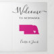 Bem-vindos convidados ao seu casamento com esta carta tripla. Há muito espaço para incluir seu itinerário, sugestões de restaurantes, coisas para fazer e informações de contato. Há espaço para uma foto na parte de trás da carta. Todo o texto pode ser personalizado, incluindo o título. Você pode editar as cores de qualquer parte desta design, assim como mover o coração para o local do seu casamento. Para alterar as cores, clique em personalizar e, em seguida, "editar usando a ferramenta design." Selecione o elemento que deseja editar e, em seguida, use as ferramentas para fazer as alterações.
