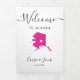 Bem-vindos convidados ao seu casamento com esta carta tripla. Há muito espaço para incluir seu itinerário, sugestões de restaurantes, coisas para fazer e informações de contato. Há espaço para uma foto na parte de trás da carta. Todo o texto pode ser personalizado, incluindo o título. Você pode editar as cores de qualquer parte desta design, assim como mover o coração para o local do seu casamento. Para alterar as cores, clique em personalizar e, em seguida, "editar usando a ferramenta design." Selecione o elemento que deseja editar e, em seguida, use as ferramentas para fazer as alterações.