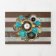 Programa Com Borda Tripla Relógio e Rosas de Turquesa em Striping