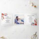 Rhododendron ramo com flores rosa-pêssego programa Tri-Fold casamento. Ele apresenta um ramo de rododendros adornado com flores rosa-pêssego e folhagens nos cantos, enquanto o centro interior exibe uma fotografia do casal. Os nomes são apresentados em tipografia decorativa, e cada painel é emoldurado com bordas pretas finas.