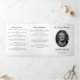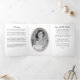 Elegante programa de memorial em preto e branco com molduras de fotos ovais em dourado oferece uma homenagem atemporal e digna para honrar a vida e o legado de um ente querido. Este programa de funeral tri-fold apresenta um layout refinado que equilibra conteúdo significativo com design clássico, incluindo seções para obituário, ordem de serviço, agradecimentos, um poema e duas fotos. O formato estruturado guia os participantes através do funeral, serviço memorial ou celebração da vida com graça e clareza, enquanto os grandes painéis de fotos permitem que você mostre memórias queridas. Projetado com uma estética minimalista, este programa combina texto preto nítido com amplo espaço em branco, garantindo que todos os detalhes sejam fáceis de ler e organizados de forma atenciosa. O uso de fotos com bordas douradas adiciona um toque quente e elegante sem distrair da simplicidade geral. Ideal para memoriais tradicionais e modernos, este design fornece uma maneira profissional e sincera de compartilhar a história da vida de um ente querido. Totalmente personalizável, permite que as famílias criem um souvenir pessoal e respeitoso que honra a memória e o significado.