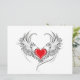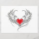 Coração vermelho pintado artificialmente com cinza de asas de anjo, decorado com contorno liso preto.