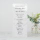 Coração desenhado na praia e no programa de cerimônias de casamento modelo. Belo design com fotografia romântica e tipografia de na moda. Fundo desvanecido com texto preto. Personalize o que deve estar em seu programa. Material de casamento de tendências para noiva e casal noivo. Incluir nomes, data, local, ordem da cerimônia e festa de casamento. Parte do conjunto de temas de correspondência de classe com acessórios de noiva e muito mais. Excelente para casamento de destino tropical. Foto preta e branca com cobertura transparente.
