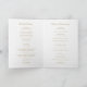 Programa de casamento elegante dobrado com um design limpo e atemporal com seu monograma dentro de um brasão de coroa.