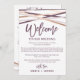 Essas serpentinas em rosa dourado com cartões de carta de boas-vindas e itinerário são perfeitas para um casamento moderno. O design sofisticado apresenta linhas cruzadas em roxo ameixa, rosa beijo e folha de rosa dourado falsa para um visual geométrico. A frente do cartão apresenta uma carta de boas-vindas e o verso do cartão apresenta o itinerário do casamento. Essas notas são perfeitas para casamentos de destino e sacolas de boas-vindas para hóspedes de hotéis.