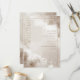 Este elegante programa de casamento apresenta um layout clássico vertical com um fundo em aquarela em tons suaves de bege e marrom claro, criando um efeito orgânico semelhante a uma nuvem. O design inclui um "BEM-VINDO" em negrito no canto superior esquerdo, seguido por um cronograma de cerimônia centralizado em fonte serifada maiúscula, e conclui com nomes e data personalizáveis na parte inferior. Seu estilo sofisticado combina charme rústico com elegância atemporal, tornando-o perfeito para casamentos formais. A composição limpa foca na legibilidade, mantendo uma atmosfera quente e convidativa.