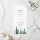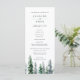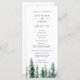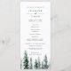 Nosso programa de casamento rústico e elegante de inverno apresenta os detalhes da sua cerimônia encimados por um único pinheiro em verde caçador pintado à aquarela, cercado por neve. O verso lista os membros do seu casamento com campos de texto facilmente editáveis. Coordena com a nossa coleção de convites de casamento Timber Grove para casamentos rústicos e elegantes em ambientes florestais. Use os campos do modelo para adicionar as informações da sua cerimônia e cortejo, e clique em "Personalizar" para reposicionar os elementos, se necessário.