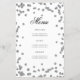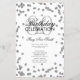 Design "Programa de Festa de Aniversário" elegante com Confetes de Brilho em Prata e texto personalizado.