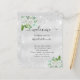 Um fundo metálico de cor prateada falsa, decorado com flores brancas e de cor aquosa, verde de eucalipto e pó de cinza prateada falsa. Personalize e adicione seus nomes e sua linha do dia do casamento.