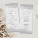 Nosso elegante programa de casamento apresenta os detalhes da sua cerimônia em um rico carvão off-black, acentuado com lavagens de aquarela cinza translúcido no topo e na parte inferior. O verso lista os membros da sua equipe de casamento com campos de texto facilmente editáveis. Coordena com a nossa coleção de convites de casamento Mist.