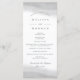Nosso elegante programa de casamento apresenta os detalhes da sua cerimônia em um rico carvão preto-esbranquiçado, acentuado com lavagens de aquarela cinza transparente no topo e na parte inferior. O verso lista os membros da sua equipe de casamento com campos de texto facilmente editáveis. Coordena com a nossa coleção de convites de casamento Mist.