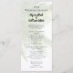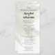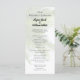 Programa de cerimônias de casamento com palmeiras. Placas brancas baratos com texto preto e personalizado em ambos os lados. A imagem de fundo é uma fachada verde de palmeiras para uma cerimônia tropical. Incluir uma mensagem pessoal aos convidados no verso.