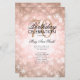 Design de "Programa de Festa de aniversário" elegante com flocos de neve e luzes em Rosa Dourado com texto personalizado.