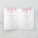 Programa dobrado de arte em cascata de flores de videira. Estes programas de cerimônia de casamento fazem parte do jogo de cascata de flores de vinha em cascata. Bonito programa de casamento em tons de coral vivo, rosa, mauve, cinza de sábio verde num fundo branco nítido. Pintura com aquarela original e design por artista e designer Sarah Trett para www.mylittleedenweddings.com no zazzle.