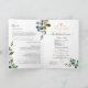 Programa de Batismo em aquarela verde e eucalipto da PixDezines com caligrafia de luxo e uma cruz em dourado falso. (Programa de Batismo da Igreja de Jesus Cristo dos Santos dos Últimos Dias) Todos os elementos são editáveis, copiar e colar.
