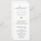 Este programa chic de casamento brilha com simplicidade. A tipografia moderna e a caligrafia deslumbrante acentuadas por um coração bonito em ouro (impresso), essa ordem de serviço com um resumo de pessoas-chave nas costas é minimalista e elegante.