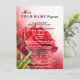 Criado no estoque de cartões semisgloss de 110 lb para impressão ótima de fotos, este clássico cartão de programa luncheon está esperando que você personalize com suas próprias informações. Tem cantos arredondados para um visual elegante e uma foto de fundo Rosa vermelha. O texto é feito em preto e branco. O verso é mostrado em vermelho com texto branco. Um belo toque para seus prêmios também. Tem de personalizar este item. Escolha estilos de texto, cores, etc.