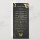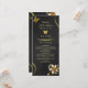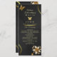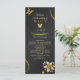 Mande seus convidados através de seu dia especial com este cartão de programa de casamento maravilhosamente projetado, com sotaques florais de ouro e borboletas graciosas em um lindo fundo preto. Perfeito para traçar a ordem da cerimônia e apresentar sua festa de casamento, este cartão adiciona um toque de elegância e continuidade ao seu tema de casamento. Os detalhes de ouro e borboletas simbólicas evocam beleza, transformação e alegria de novos começos. Este cartão de programa é prático e decorativo e serve como um importante guardião para que seus convidados apreciem muito depois da celebração.