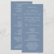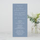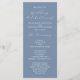Programa de casamento moderno do tema azul empoeirado da escrita minimalista.