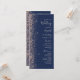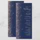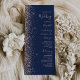 A borda esquerda deste elegante programa de casamento moderno apresenta um design falso de pêssego. O texto personalizável combina manuscrito de pêssego, fontes em copperplate e itálico em um fundo azul marinho.