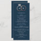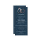 O texto limpo e moderno é facilmente personalizado neste formato chic, magro, programa de casamento. O tipo branco se sente sofisticado e feminino quando acentuado com uma folha de ouro rosa falso de anéis de casamento encravados sobre um fundo de azul marinho.