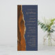 A borda esquerda deste elegante programa de casamento moderno apresenta uma cor de água laranja queimada, aparada com falsa brilho dourado. O texto personalizável combina o script de caligrafia dourada e as fontes sans serif em um fundo azul marinho.