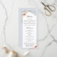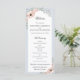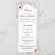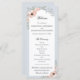 Este programa de casamento apresenta um lindo gráfico de aquarela de flores coloridas de pêssego acentuado com verde. A borda é um azul suave e empoeirado.