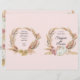 "Programa de Casamento Boho Floral Aquarela Pampas Palmeira." Cores rosa beije e tons terrosos quentes para uma cerimônia de casamento moderna e trendy. Suas informações são facilmente inseridas usando os campos do modelo. Você precisará dobrá-los ao meio quando os receber. A obra de arte foi pintada pela artista licenciada internacionalmente Audrey Jeanne Roberts, direitos autorais reservados.