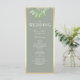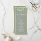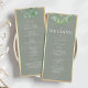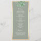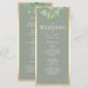 Programa de casamento moderno e elegante em verde salvia suave com folhagens botânicas em aquarela e caligrafia refinada. Este layout frente e verso inclui os detalhes da sua cerimônia e lista de membros da festa, emoldurado com bordas douradas chiques.