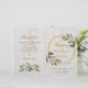Um programa de casamento dobrado, combinando várias tendências: geométrico, mármore e metálico (dourado).