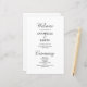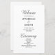 Apresentando nosso programa de casamento minimalista clássico que irá adicionar um toque de sofisticação ao seu dia especial. Com a elegante escrita preta e a escrita clássica num fundo branco, é perfeita para casamentos formais. Além disso, você pode personalizar as cores do texto e do fundo para combinar o seu tema e a sua papelaria de casamento. Crie o casamento que sonha e faça uma declaração com a nossa design minimalista elegante. Peça o seu hoje e torne o seu grande dia ainda mais especial!